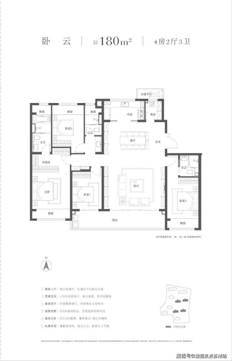 建面约180㎡四房两厅三卫,可媲美大平层,约6米餐客厅、约9m的大阳台,尺度感拉满,独立家政间、小家化的主卧套房都是保利姑苏瑧悦的设计巧思,引领宽居进入平墅时代。