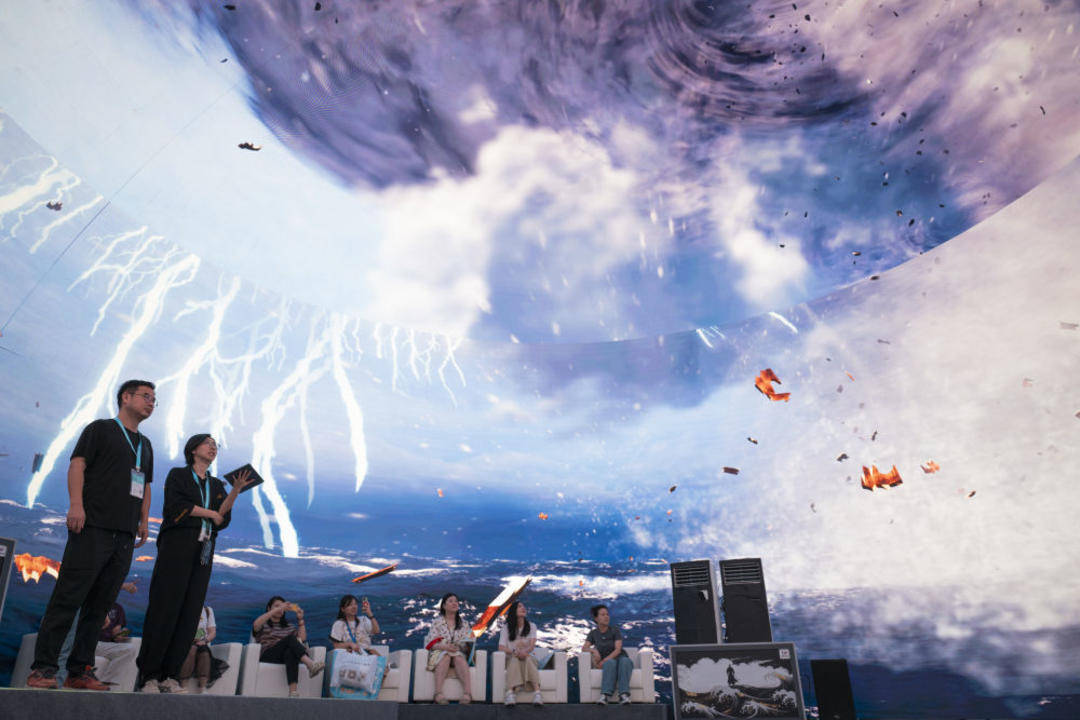 2025年9月12日,观众在2025中国文化旅游产业博览会上参观多业态文旅球幕。当日,2025中国文化旅游产业博览会在武汉开幕,本次博览会以“深化文旅融合 畅享美好生活”为主题,融合“展、演、销、游”四大功能。室外展区展示以“河山添锦绣”为主题的文旅IP花车矩阵,室内展馆集中展现文旅新业态、新场景、新产品,涵盖数字集群、智能导览、低空文旅、非遗文创等方面,吸引了国内2000余家展商以及50家海外旅行商参展。