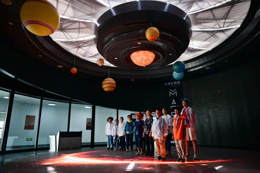 2025年7月29日,参加暑期研学的小朋友在青海省海西蒙古族藏族自治州冷湖镇“冷湖实验室”学习天文知识。冷湖镇曾是因石油而兴、又因油尽而沉寂的工业遗址小镇。然而,得天独厚的地理条件,让冷湖镇成为理想的观星地。近年来,当地发展科幻特色文旅,让戈壁小镇焕发新的生机。冷湖天文观测基地引进十余家科研单位的数十台望远镜,依托天文资源和戈壁奇景,打造火星实验室、黑独山等“出圈”地标。连续举办多届的“冷湖科幻文学奖”,更让这片土地成为科幻创作的新高地。冷湖镇以科幻点亮文旅新场景,也为中国西北工业小镇的转型探索出一条充满想象力的新路径。