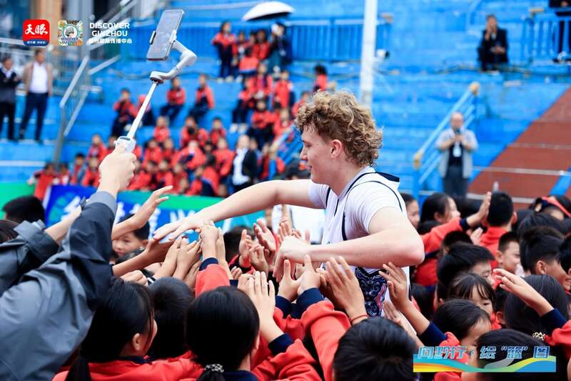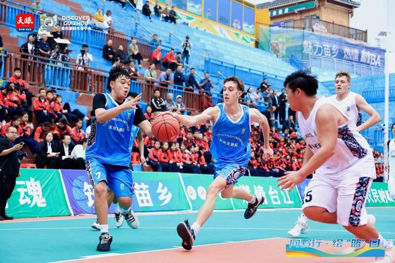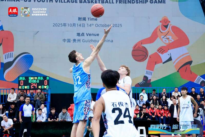 10月14日,贵州台江“村BA”球场迎来一场特别的比赛——中美青少年“村BA”友谊赛在此上演。来自美国犹他预科学院(Utah Prep Academy)的男子篮球队与贵州“村BA”青年篮球爱好者混合组队,以篮球之名,跨越语言与文化的阻隔,展开一场关于热爱、尊重与友谊的篮球对话。